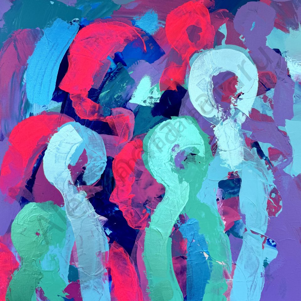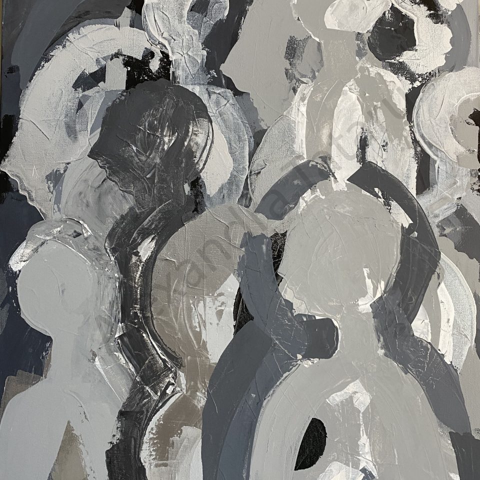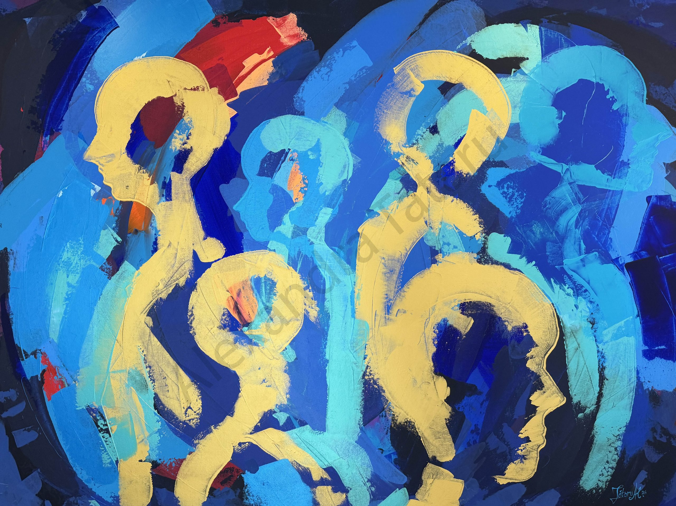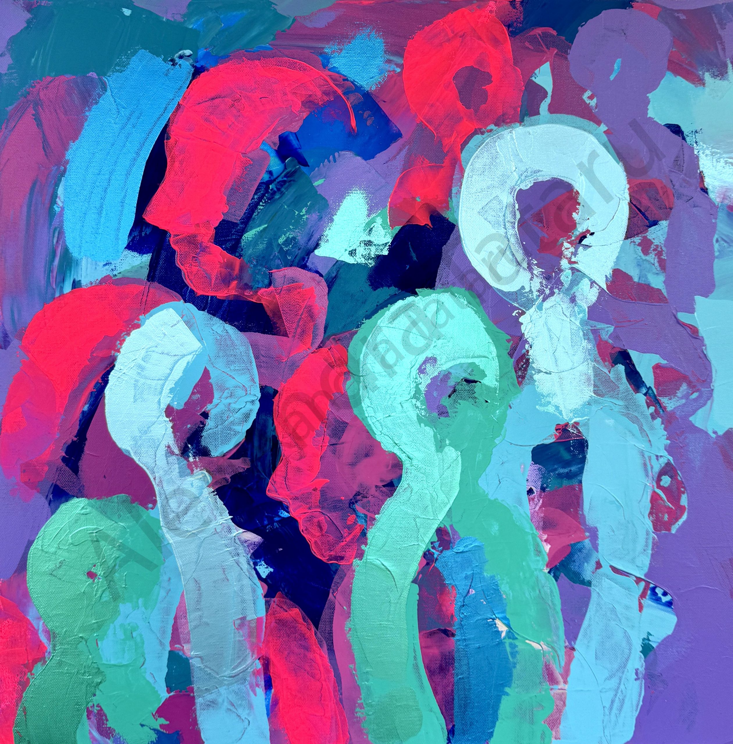 Crowds is the precursor to the Ethnic Synergies collection, which is one of the reasons I wanted to exhibit it alongside Ethnic Synergies. Crowds is a reflection of what I perceive when a gathering of individuals from various origins, ethnicities, and cultural heritages comes together, by design or by happenstance, to connect, enjoy, and mingle, or simply to move about amidst each other. The colours I’ve chosen depict the energy and motion they emit. Our energies are a reflection of our lives, and while we are all different, we are all, ultimately, similar. We may hold different beliefs, but in the end, we are all part of a crowd, each day constructing our own societies’ distinct traits, never as a mirror image of someone else and always unique in our essence. And because some have particularly stood out from the crowd at various times in history, the dance of their personalities has helped to create our world today. Alexandra Tataru