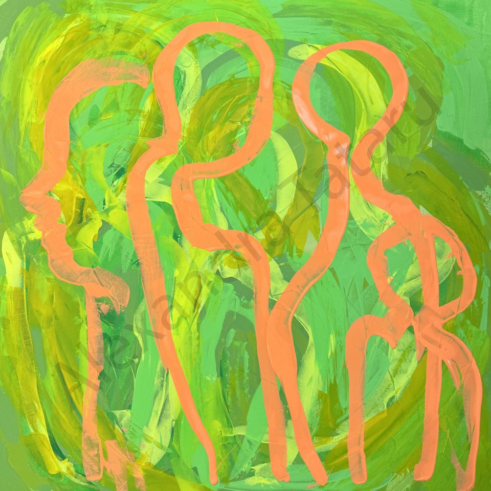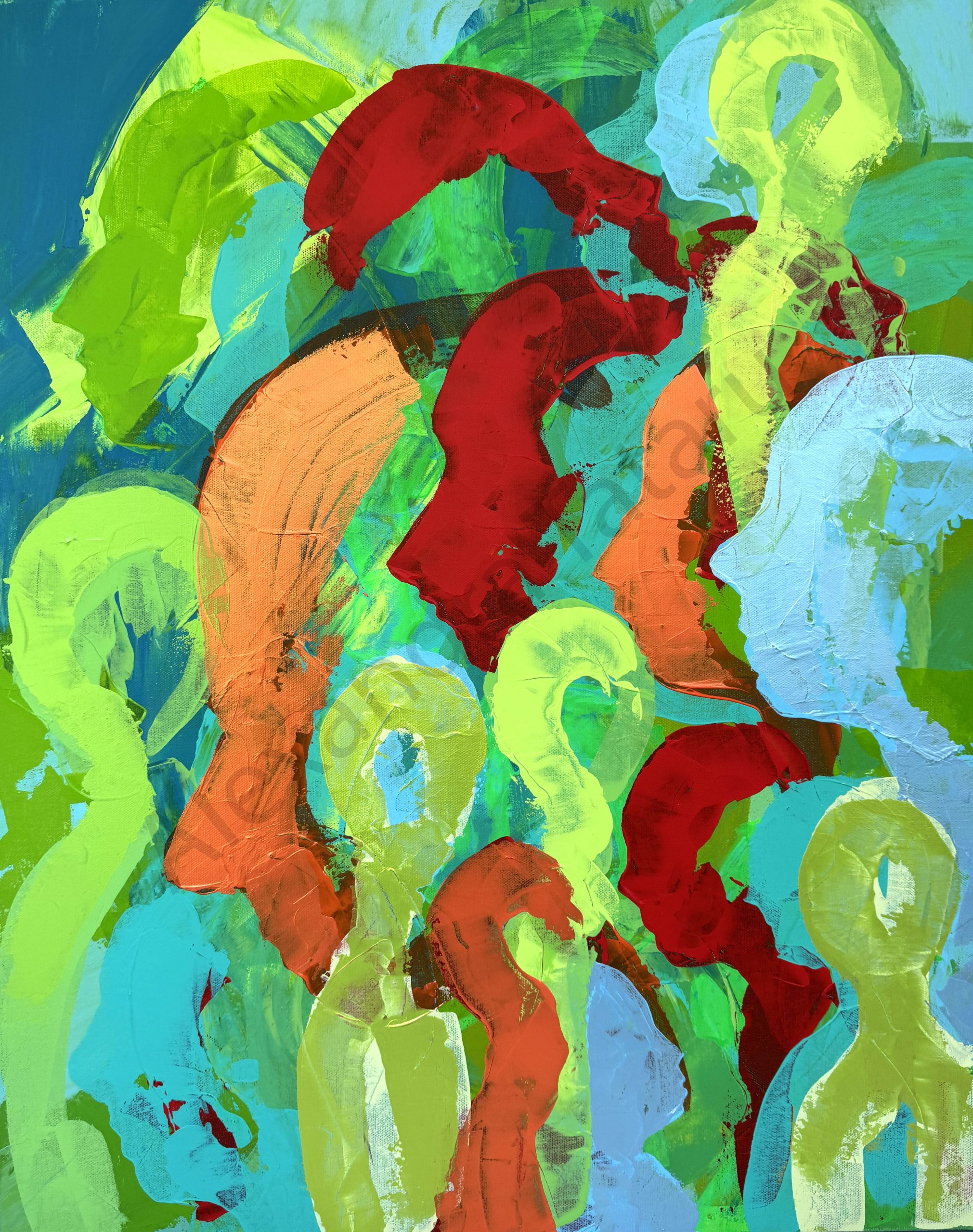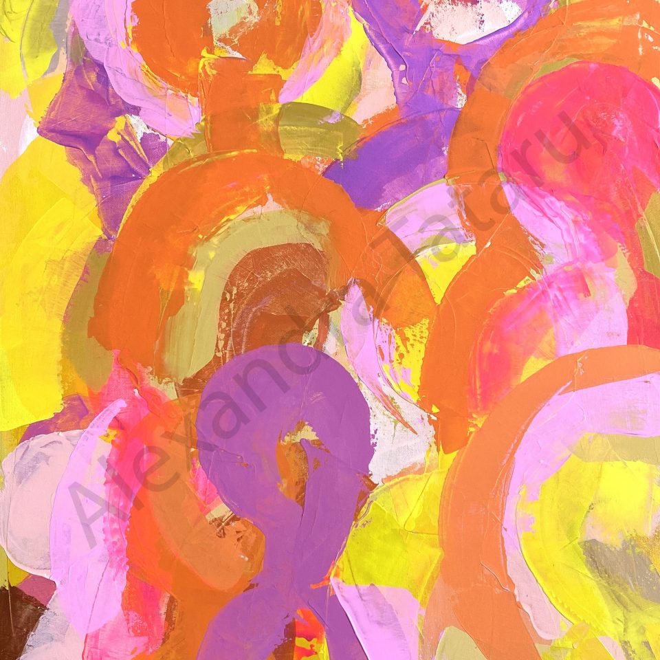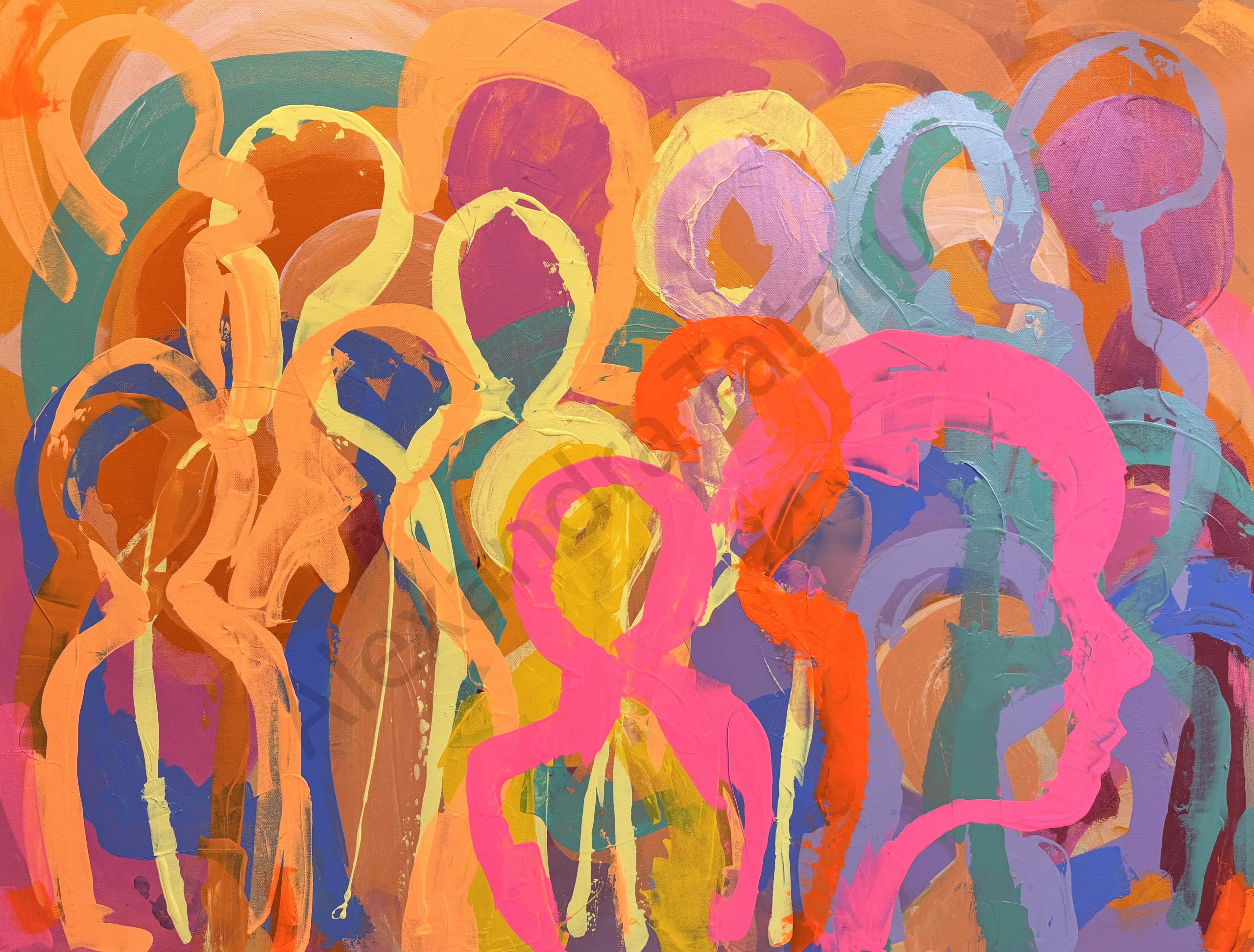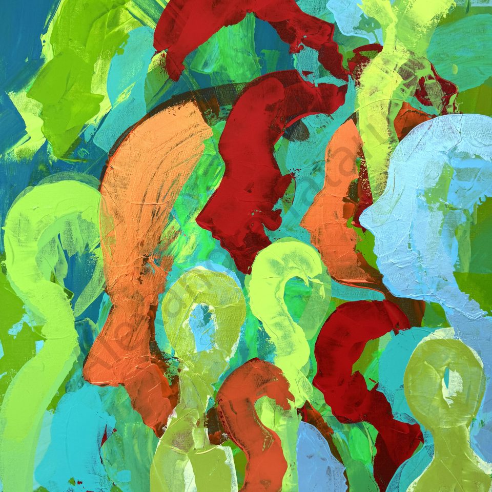 Crowds is the precursor to the Ethnic Synergies collection, which is one of the reasons I wanted to exhibit it alongside Ethnic Synergies. Crowds is a reflection of what I perceive when a gathering of individuals from various origins, ethnicities, and cultural heritages comes together, by design or by happenstance, to connect, enjoy, and mingle, or simply to move about amidst each other. The colours I’ve chosen depict the energy and motion they emit. Our energies are a reflection of our lives, and while we are all different, we are all, ultimately, similar. We may hold different beliefs, but in the end, we are all part of a crowd, each day constructing our own societies’ distinct traits, never as a mirror image of someone else and always unique in our essence. And because some have particularly stood out from the crowd at various times in history, the dance of their personalities has helped to create our world today. Alexandra Tataru