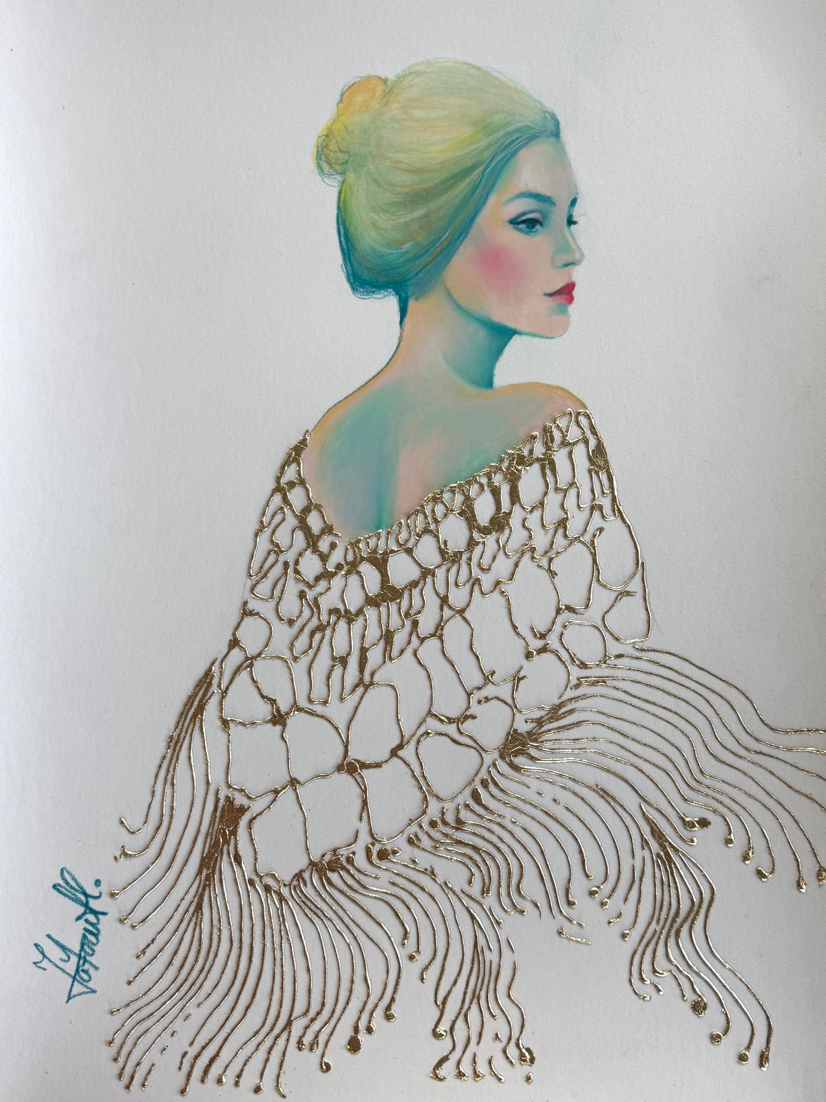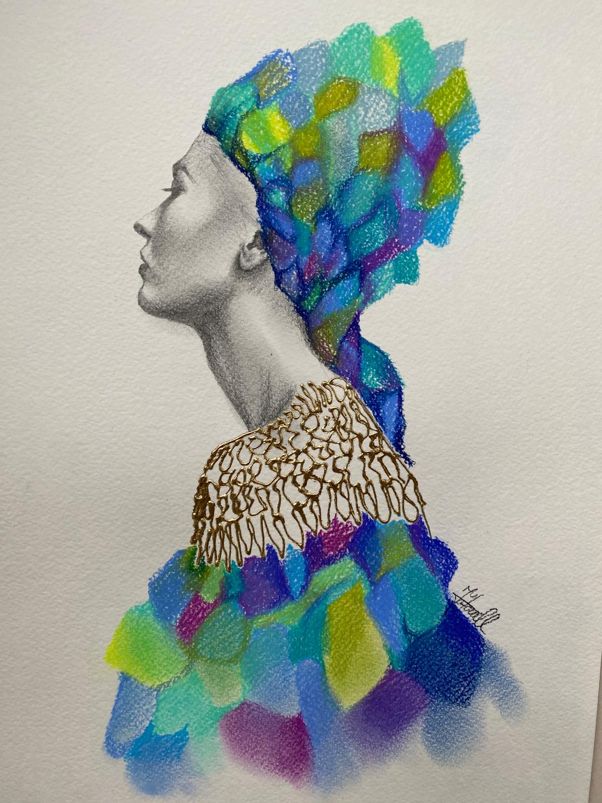Tribute Collection - Pastel on Paper Mat with Gold Leaf